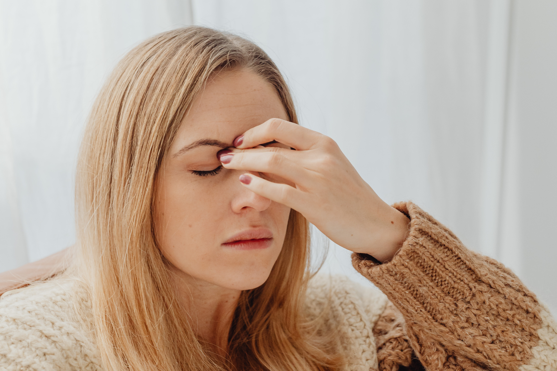 A tight band-like sensation around the forehead, and sensitivity around the scalp.